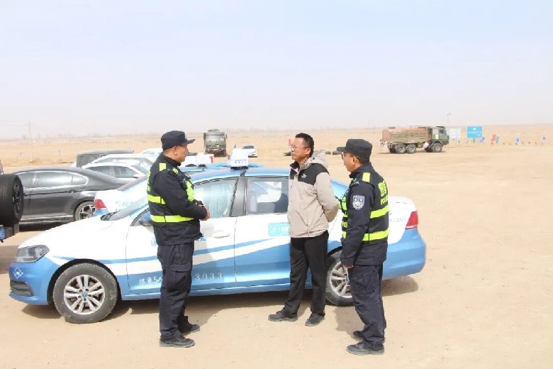 瀚海无垠,沙丘叠嶂。无人机再次升空巡防,与地面徒步、车辆巡控组成立体安防体系,实时排查隐患、处置突发,让守护无盲区、服务零延误。民警们在沙地上开设“流动法治课堂”,用朴实话语宣讲安全知识,熟悉的叮嘱让志愿者们倍感安心。