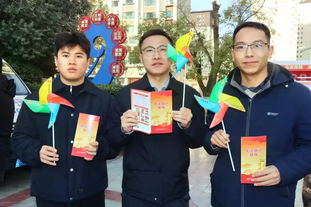 12月4日上午,陇南市、区两级联合举办2025年“宪法宣传周”集中宣传活动。市委依法治市委员会委员、市政府副市长张波,市委依法治市办常务副主任、市司法局局长杨炳,武都区委常委、区委政法委书记高小强,武都区委常委、宣传部长苏俊平等出席此次活动,并在活动现场为群众分发普法宣传册。