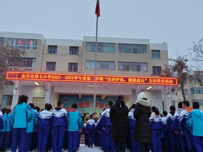 金昌市第七小学开展“法治护航,健康成长”主题国旗下的讲话法治宣讲活动。