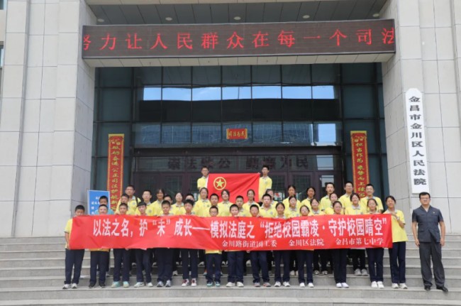 配强法治副校长队伍。从政法机关选派66名法治工作者,为区属中小学、幼儿园各配备3名法治副校长。法治副校长深度参与学校法治教育,开展专题法治讲座,带领学生参观法院诉讼中心、审判庭;指导“模拟法庭”活动,让学生扮演法官、公诉人等角色,完整模拟校园纠纷案件庭审流程,让学生在沉浸式体验中感受法律威严、理解法律内涵。此外,金川区2个青少年法治宣传教育基地获评省级青少年法治宣传教育实践中心,让实践成为法治观念养成的“催化剂”。