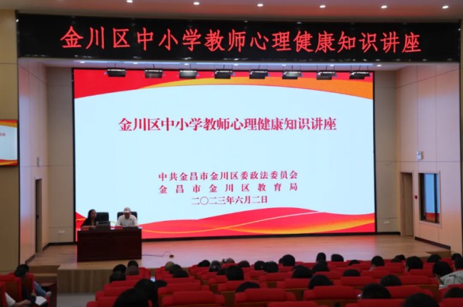 金川区委政法委联合金川区教育局开展中小学教师心理健康知识讲座培训。